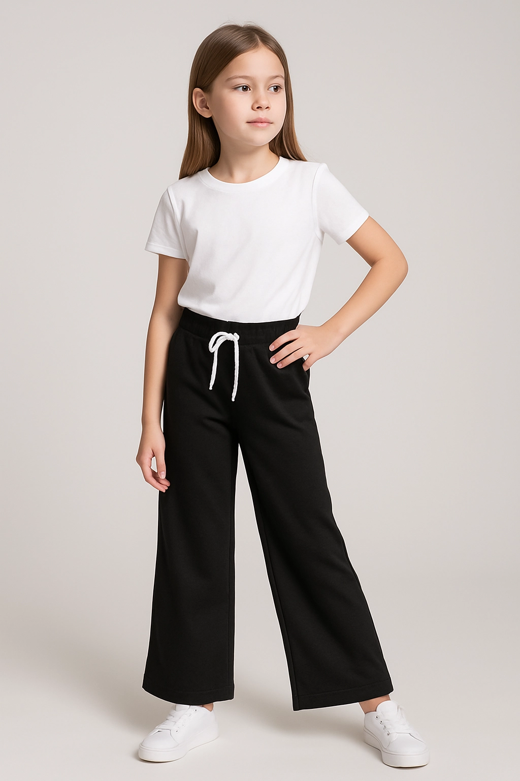 Černé dívčí tepláky se širokými nohavicemi