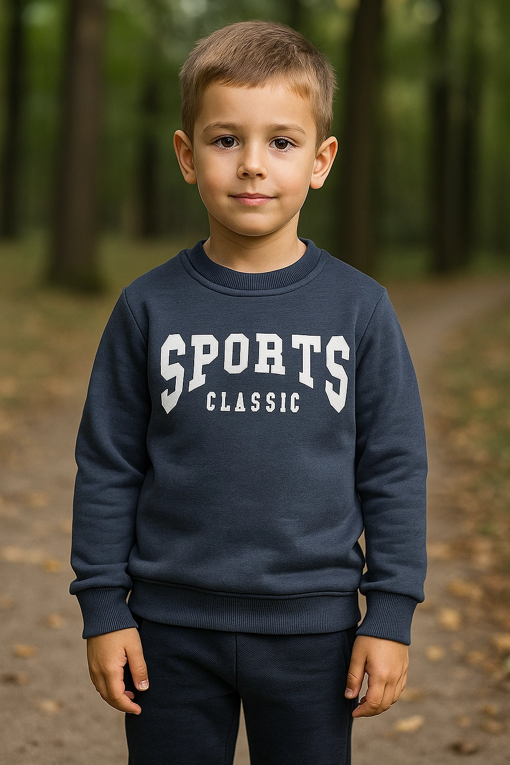 Modrá mikina s nápisem "SPORTS CLASSIC" na přední straně. Má kulatý výstřih, dlouhé rukávy a žebrované lemy. Pohodlný a měkký materiál s fleecem vhodný pro každodenní nošení. celý popis