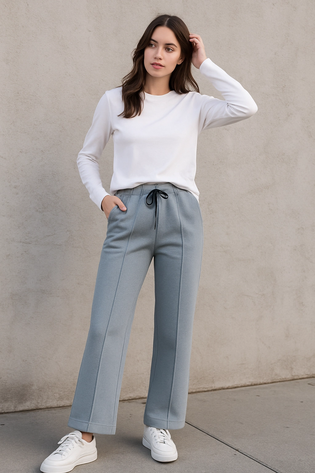 Dámské rozšířené tepláky s fleecem – světle šedé