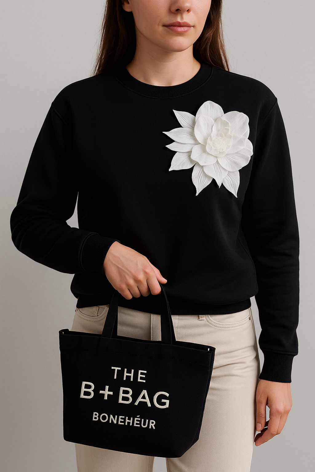 Dámský jarní svetr s květinou | L'Ery Fashion | Stylová móda pro ženy, muže i děti